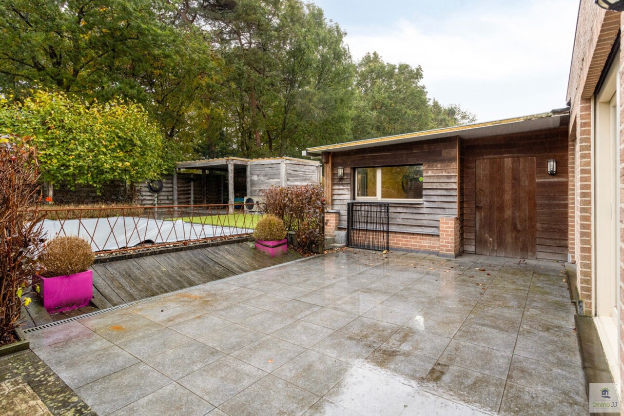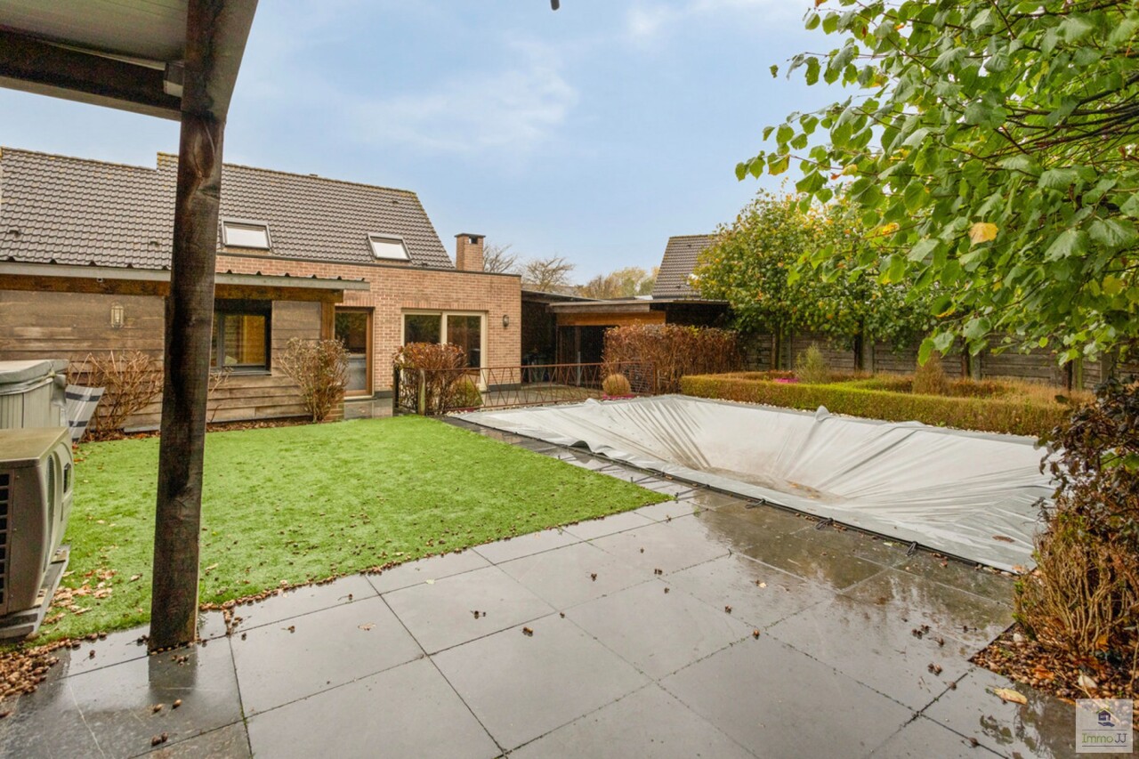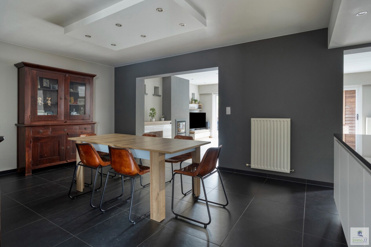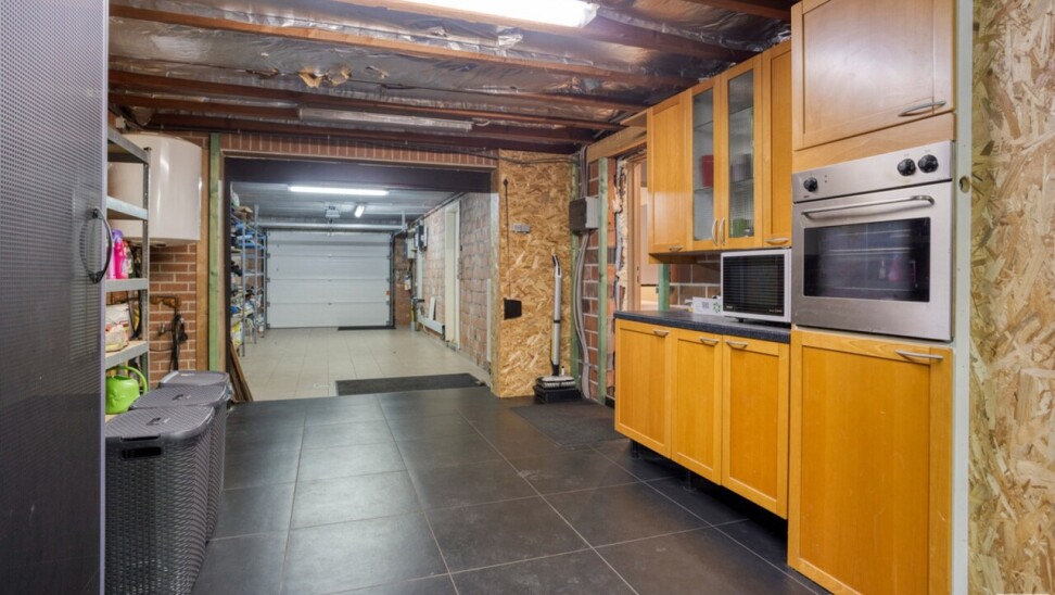 INDELING: Gelijkvloers: inkomhal met apart toilet, bureauruimte, living, eetplaats met open keuken. Garage met bergplaats en polyvalente ruimte met toegang tot terras en tuin. Werkplaats en garage. Poolhouse. Verdieping 1: nachthal met 3 slaapkamers en badkamer. Zolderruimte toegankelijk via grote slaapkamer en mogelijks om te vormen tot 2e badkamer/dressingruimte.