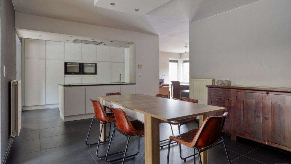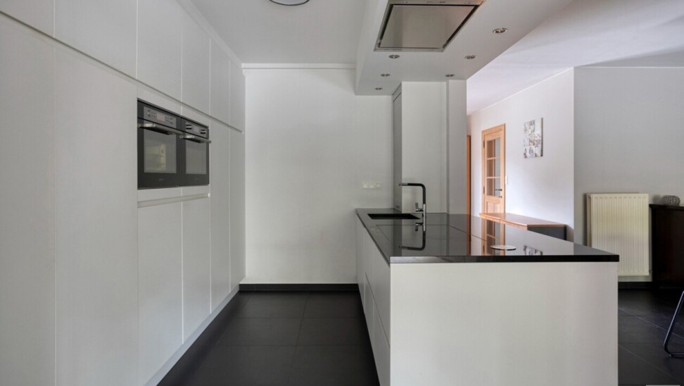+ nieuwe keuken met 2 frigo's waarvan 1 met vriesvak, dubbele spoelbak, keramische kookplaat, dampkap, vaatwassser, stoomoven en combi microgolf/oven.